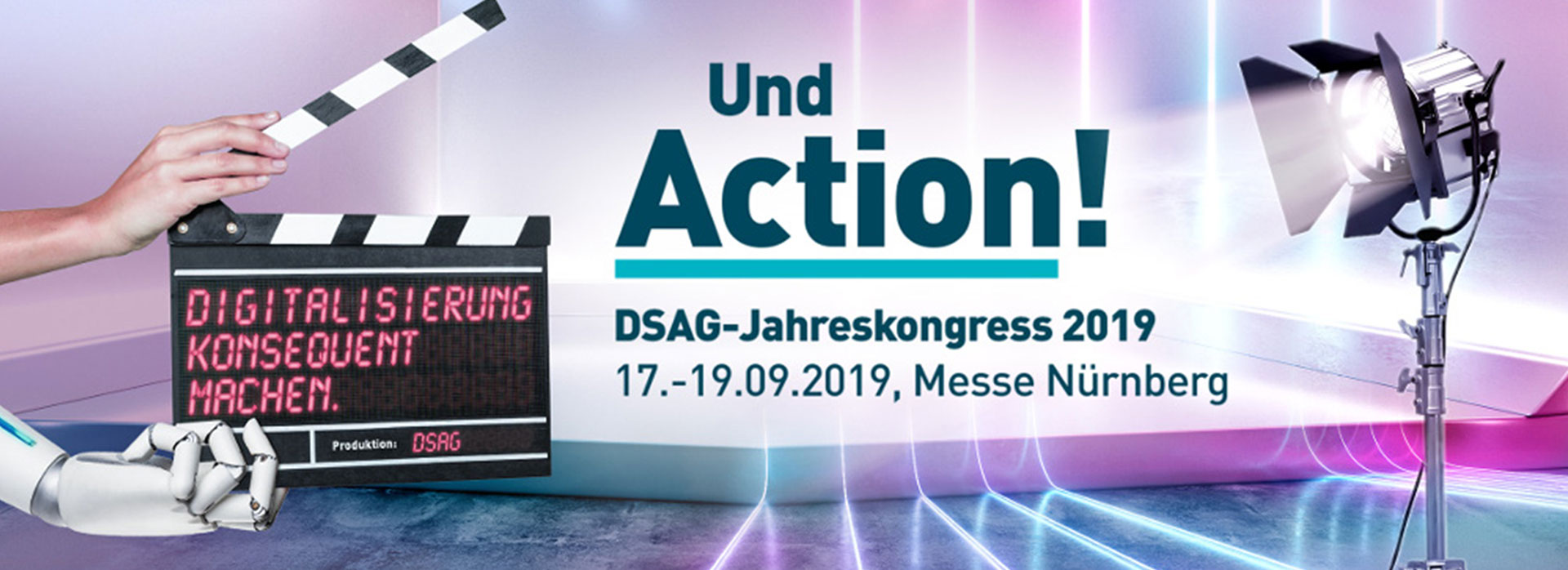 The DSAG Annual Congress 2019 will take place from 17 to 19 September at the Nuremberg Exhibition Centre – under the motto "And action! Realize digitization consistently".