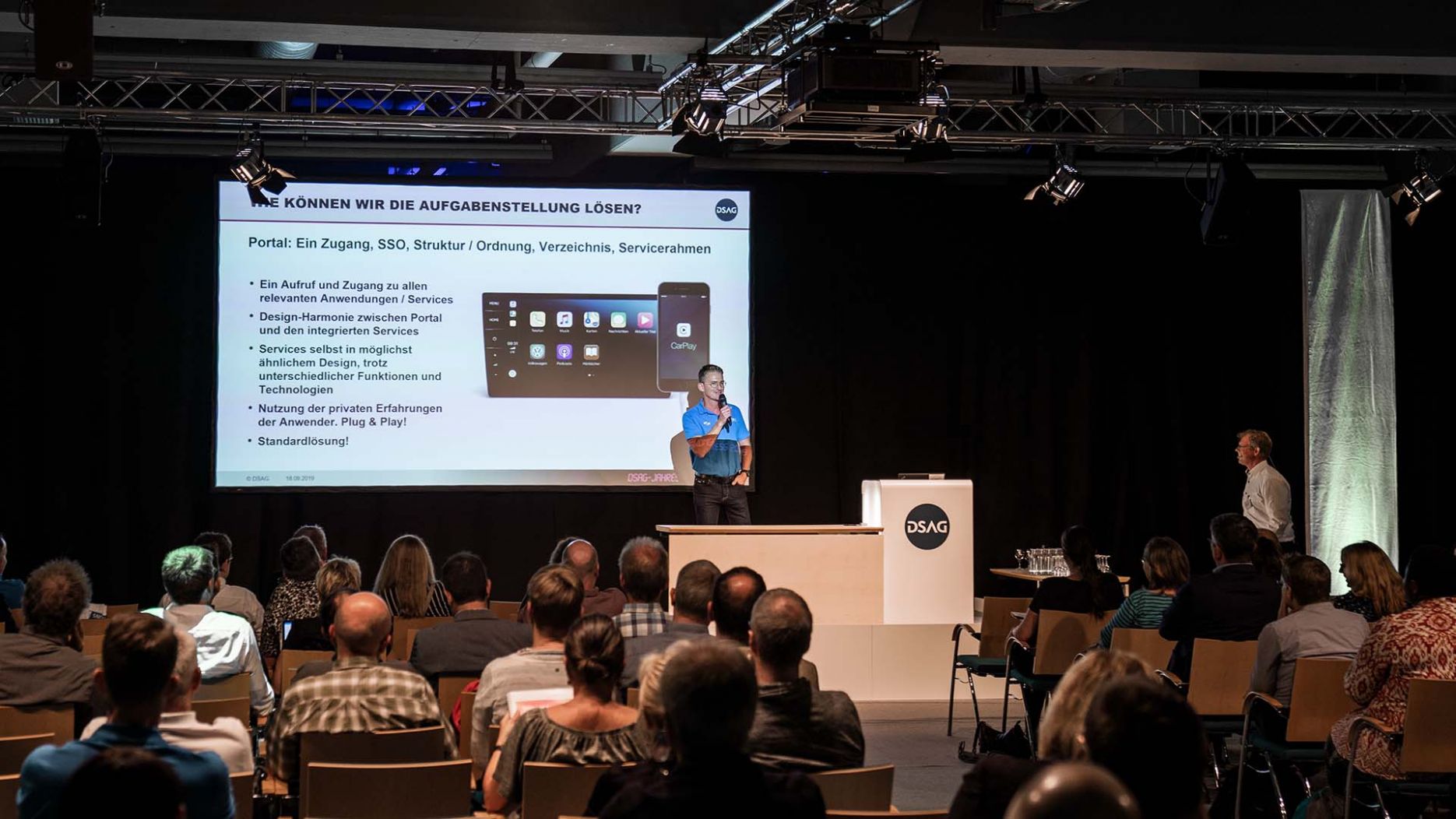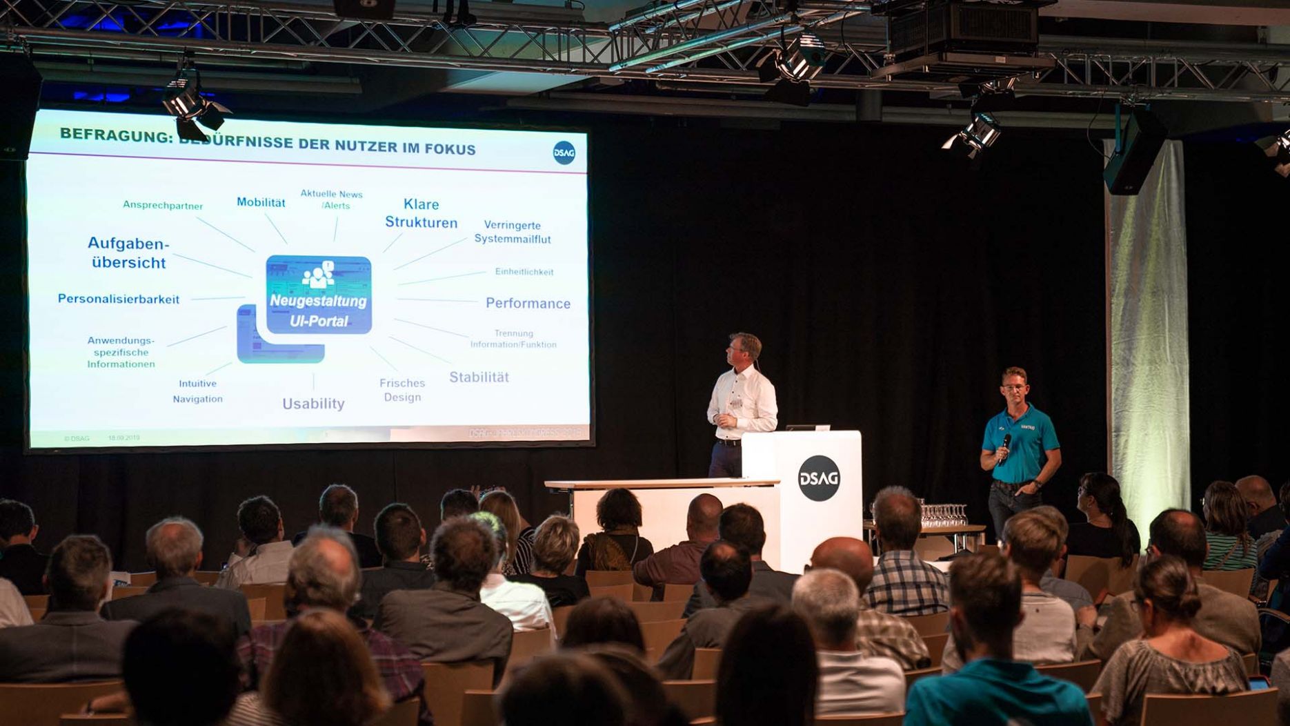 On 18.9.2019, Cornelius Fleiner, Union IT-Services, and Markus Marenbach, VANTAiO, jointly presented their successfully implemented portal project at the DSAG Annual Congress 2019. The practice report on the relaunch of the Union Investment portal (short: UI portal) gave interesting insights into the conception and implementation of the HR portal based on SAP and met with a lively response – a well-filled lecture hall was the best proof of this.
