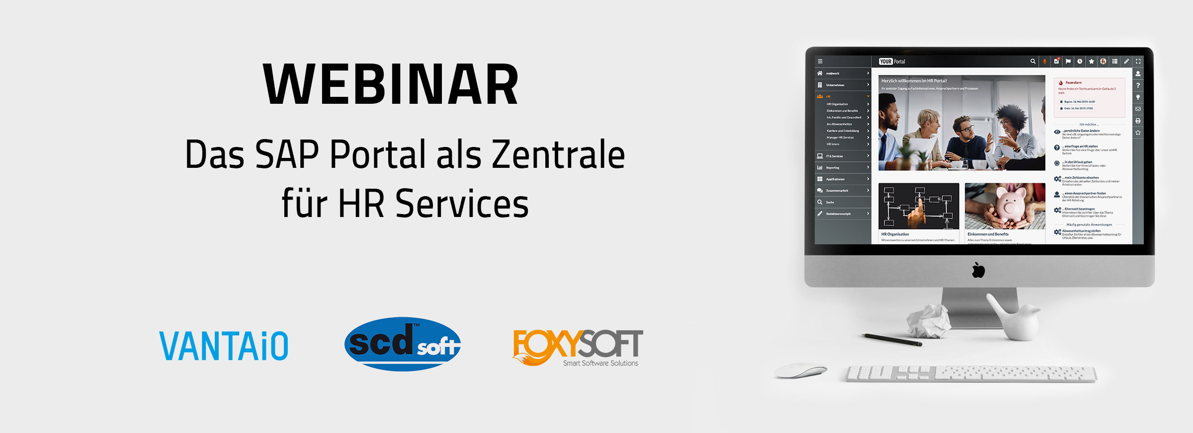 In our webinar, with the help of our partners Foxysoft and scdsoft, we demonstrate during a live demo which possibilities the SAP Portal offers, as for example central integration of HR Self Services and add-ons. This will be followed by a Q & A session.