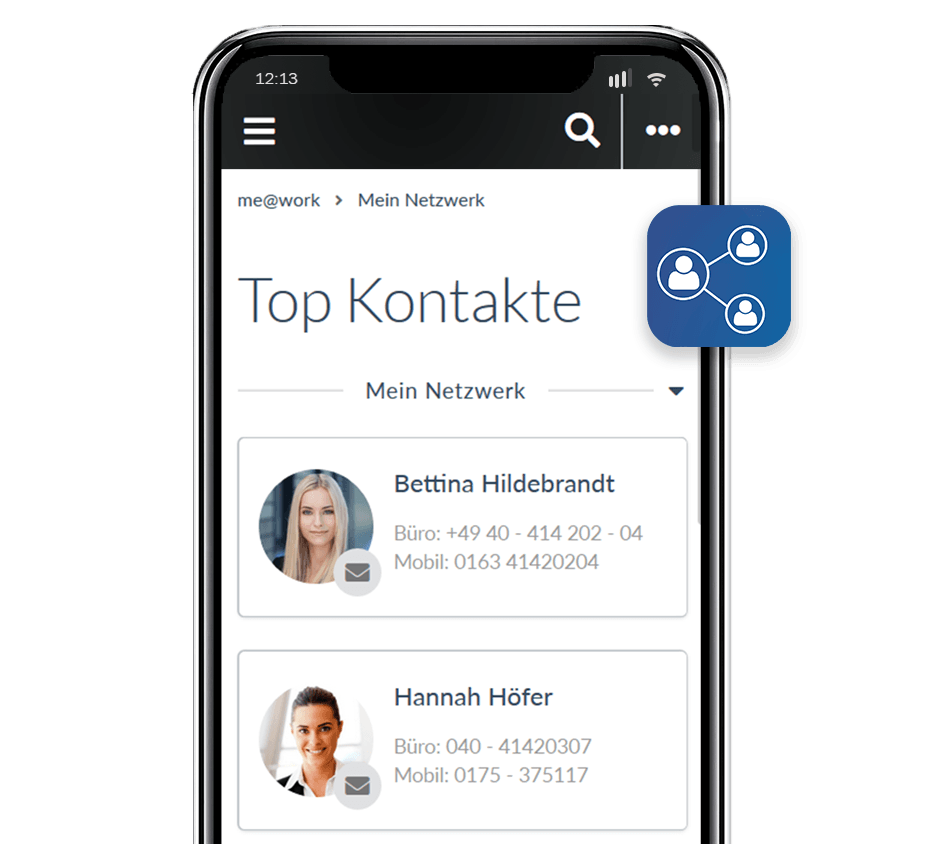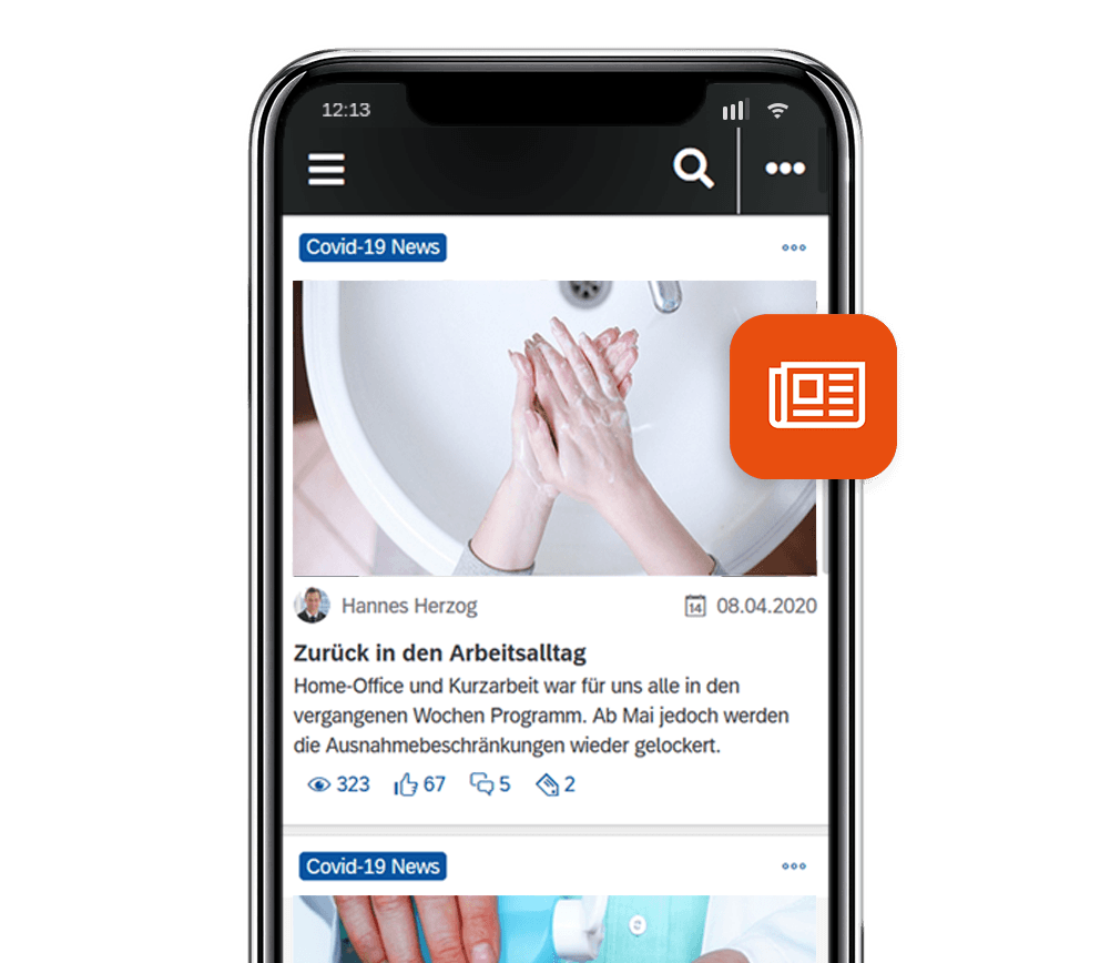 Rely on new communication and information channels (chat, comment function, wiki, etc.) and promote innovations and ideas through networking (social collaboration). Knowledge workers now spend around 15 to 30% of their working hours actively searching for information or looking for the right contact person. This is exactly where the employee app and the search function come in: Connectors enable the global search for data in SAP and non-SAP systems, just like in the good old "phone book" - only much nicer!