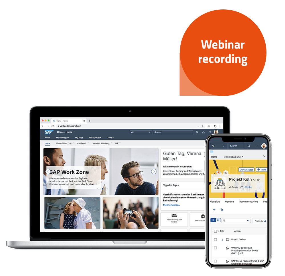 SAP has developed the latest generation of the digital workplace on the SAP Cloud Platform: SAP Work Zone. This can be understood as the successor to SAP Portal and SAP Jam. As a specialist for portals, VANTAiO is one of the first SAP partners worldwide to have become familiar with the new product at an early stage and to have been able to accompany its introduction at selected customers. We would like to share our experiences with you and provide an overview of the functions. With SAP Work Zone, SAP brings together what belongs together: processes, content, documents and collaboration - both on the desktop PC and mobile via smartphone app!