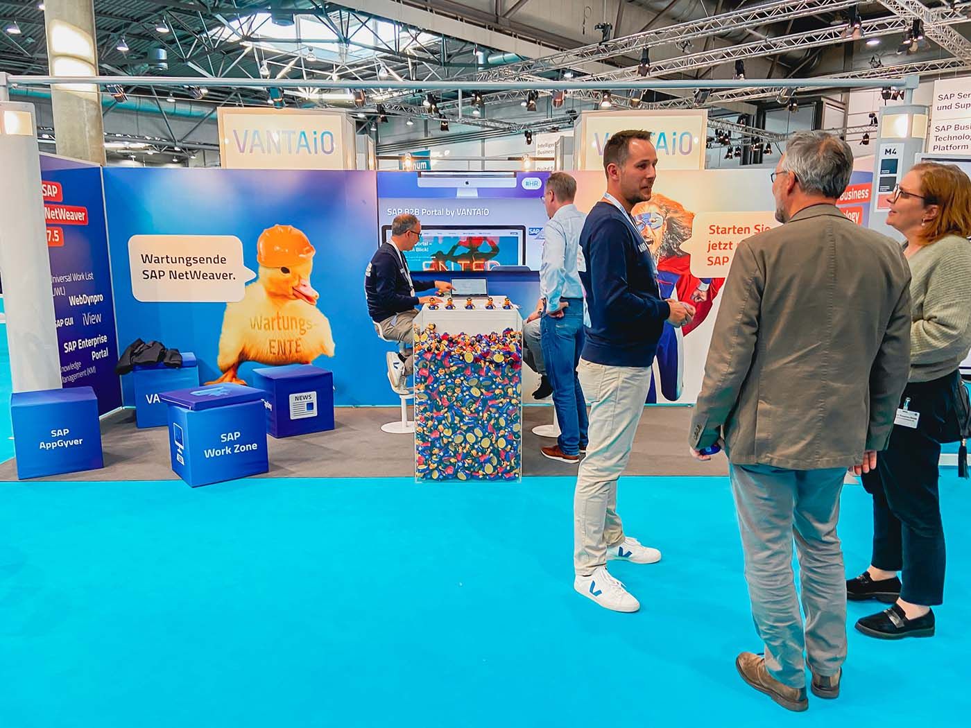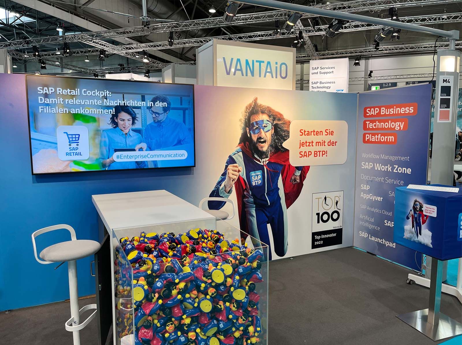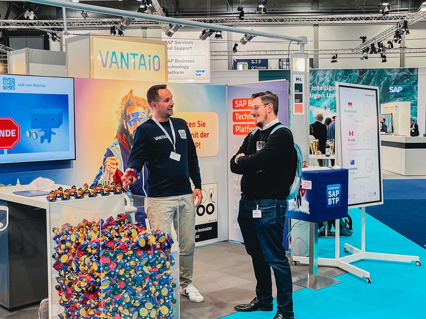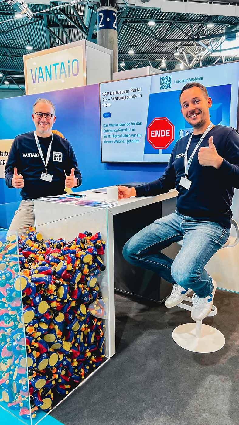 Das größte Event der SAP Community fand dieses Jahr vom 11. - 13. Oktober im Congress Center Leipzig statt - nach zwei Jahren Pause! In den letzten beiden Jahren hat der DSAG Jahreskongress leider nur in digitaler Form stattfinden können – nun war das Branchenevent endlich wieder als physische Messe zurück und VANTAiO war mittendrin, wahrscheinlich mit dem coolsten Messe-Stand in Halle 2, gleich gegenüber vom SAP Stand, und stellte den Teilnehmer:innen die Frage: Welche Ente passt zu Ihnen? "Wartungsente" oder "Super Duck"? Die richtige Antwort wurde mit unserem begehrten Giveway belohnt und es gab viele angeregte und interessierte Gespräche rund um das Fokusthema SAP Business Technology Platform (BTP) - das neue "große Ding" von SAP, um Unternehmen zu helfen, ihre Innovationen zu beschleunigen und neue Geschäftspotenziale freizusetzen - also genau das richtige Hilfmittel für den gesuchten Erfolg!