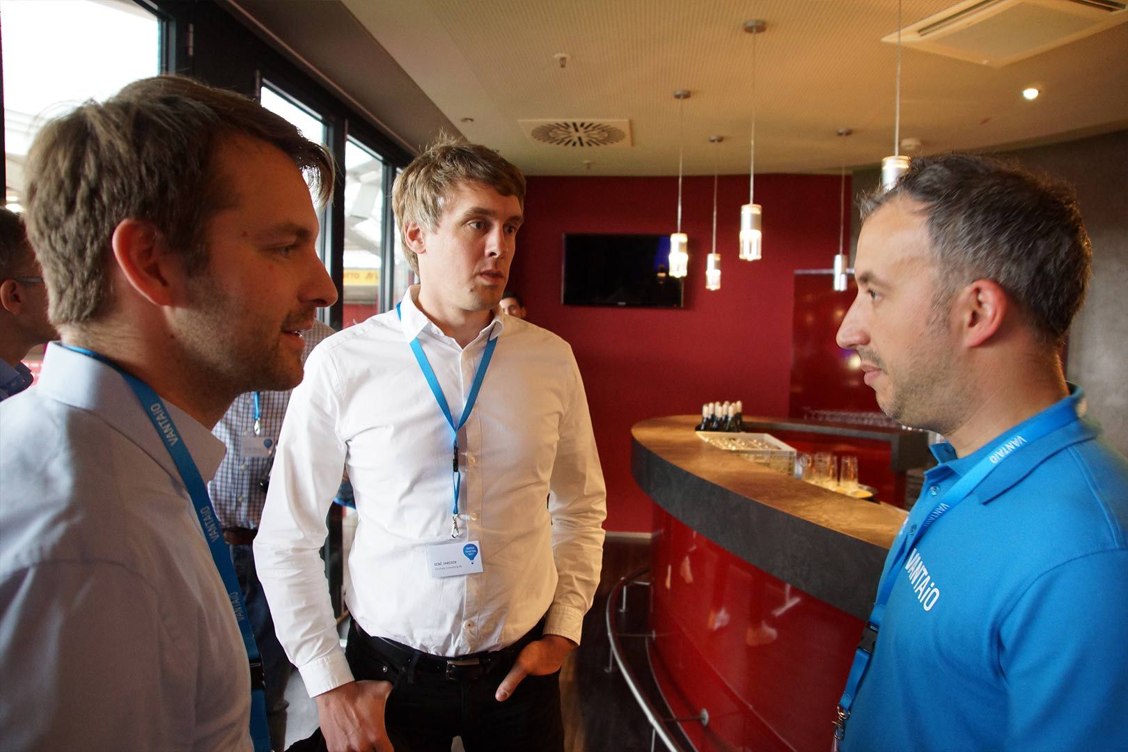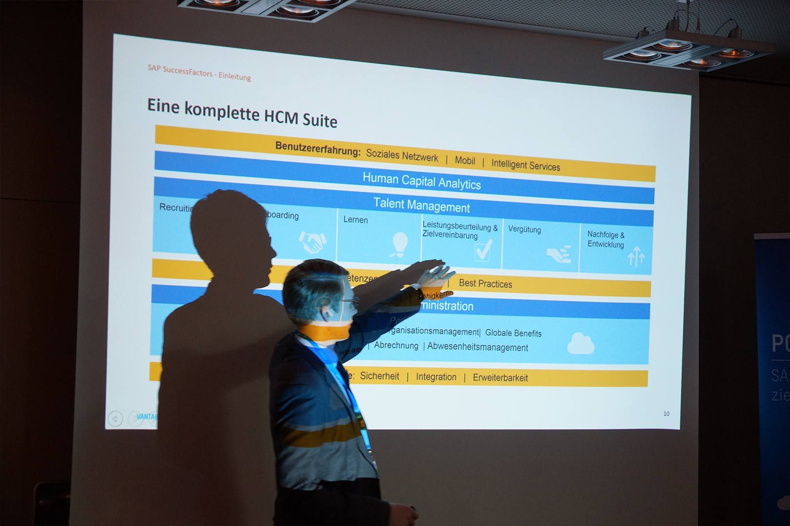 Nach diesem Auftakt ging der Ball weiter an die VANTAiO Partner. Thorben Grubert von mindsquare zeigte die SAP successFactors Integration ins SAP Portal (Leistungsbeurteilungen etc.). Björn Adam stellte den brandneuen VANTAiO workflowManager vor, entwickelt in Zusammenarbeit mit Foxysoft. Die Beispiele "Datennutzungserklärung" und "Mitarbeiterempfehlung" zeigten plastisch, wie einfach und schnell hiermit neue HR Prozesse und Formulare bereitgestellt werden können. Michael Wegner von pixelboxx demonstrierte gemeinsam mit Markus Marenbach das pixelboxx Digital Asset Management (DAM), ganz passend zur Location am Beispiel von Sportschuhen.