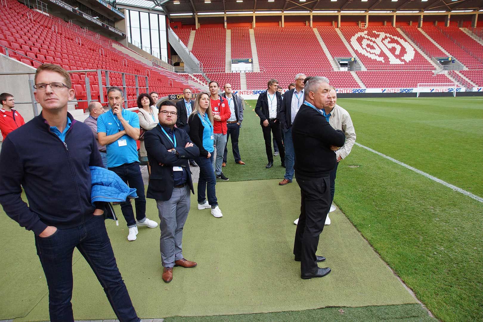 Krönendes Highlight des Tages war die hervorragend organisierte Stadionführung. Nach Zahlen, Daten und Fakten zum Stadion gab es Einblick in alle wesentlichen Bereiche, von der Business Area über Funktionsräume und Umkleiden bis direkt zur Rasenkante – und natürlich Möglichkeit zur Klärung aller interessierten Fragen. Sehr spannend, so ein lebensnaher Einblick in das Fußballerleben! Klar, dass es sich das VANTAiO Team da nicht nehmen liess, eine individuelle Pressekonferenz abzuhalten. Blitzlichtgewitter und Schlagzeilen inklusive.